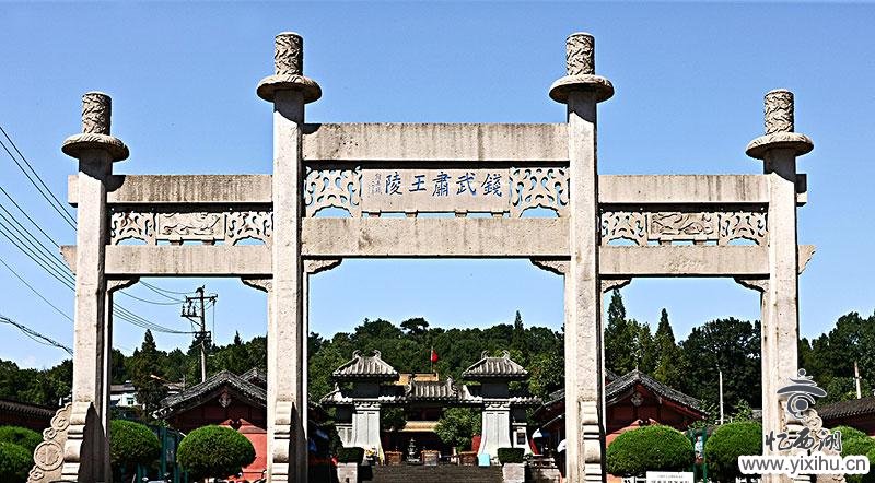 临安吴越国王陵,五代十国吴越陵墓群。全国重点文物保护单位。位于浙江省临安市锦城镇和玲珑镇的太庙山南坡、明堂山。包括吴越第一代国王钱镠墓、第二代国王钱元瓘及王后马氏墓、钱镠父母钱宽和水邱氏墓。钱镠墓有大型封土堆, 长宽各约50米,高9米,地表遗存华表、石马、石羊 等石刻。钱元瓘王后马氏墓康陵保存较好,为砖廊石室,分前、中、后三室,前室有壁画后室刻天文图,四壁有石刻浮雕和彩绘的牡丹图案。