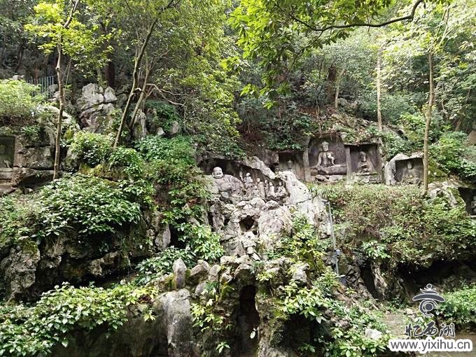 飞来峰又名灵鹫峰,山高168米,山体由石灰岩构成,与周围群山迥异,印度僧人慧理称:“此乃中天竺国灵鹫山之小岭,不知何以飞来?”故称“飞来峰”。在其岩洞与沿溪的峭壁上共刻有五代、宋、元时期的摩崖造像345尊,其中尤以元代藏传佛教(喇嘛教)造像最为珍贵,堪称我国石窑造像艺术中的瑰宝。